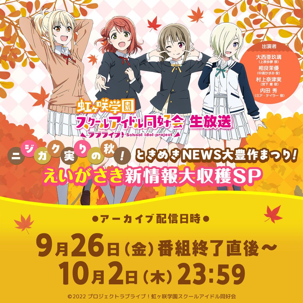 バンダイチャンネルpresents 「ラブライブ!虹ヶ咲学園スクールアイドル同好会スペシャル生放送 映画公開記念!あなたと振り返りたい♡アニガサキの思い出!」アーカイブ配信のお知らせ!