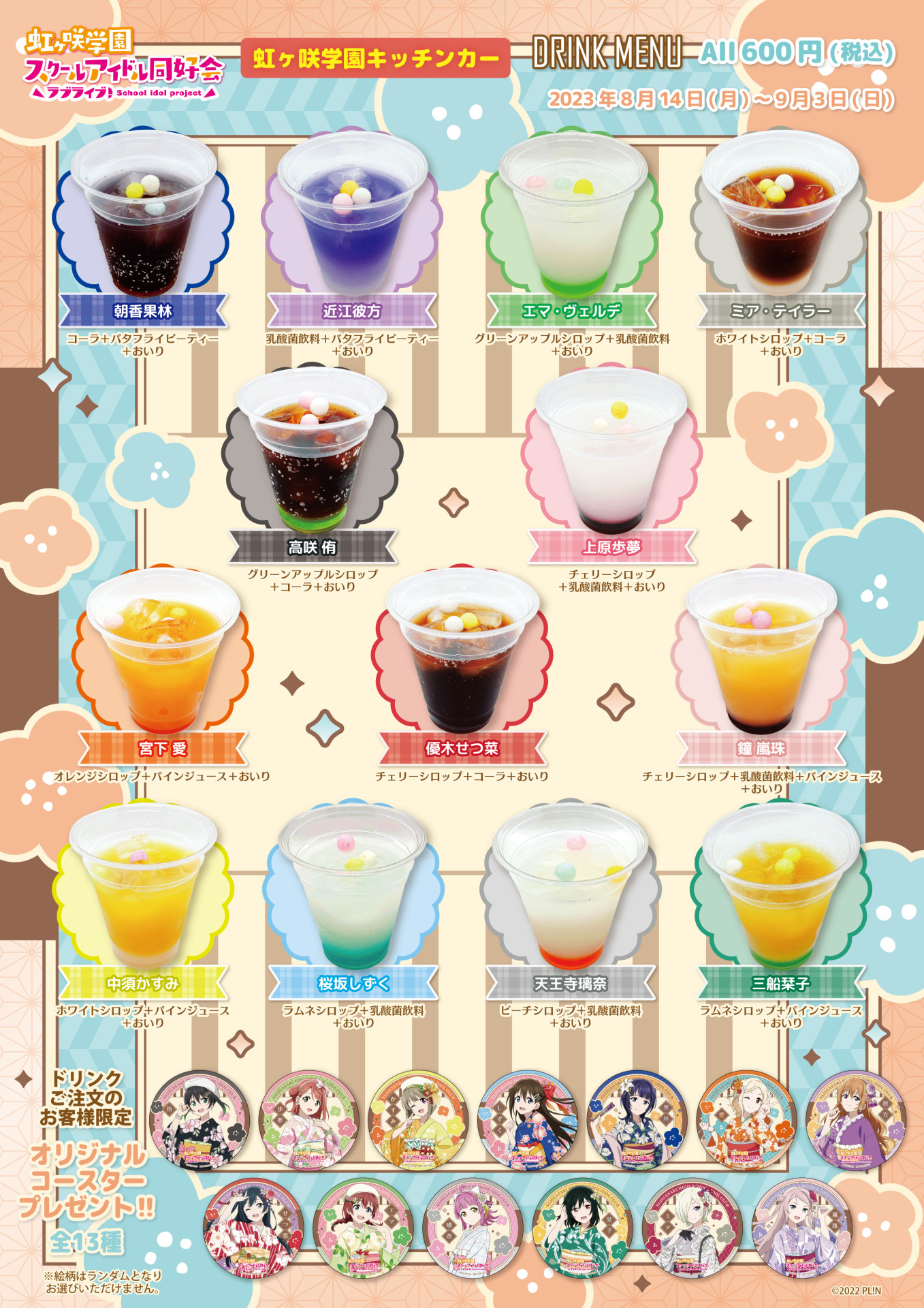 「虹ヶ咲学園キッチンカー」より通常メニュー変更のお知らせ