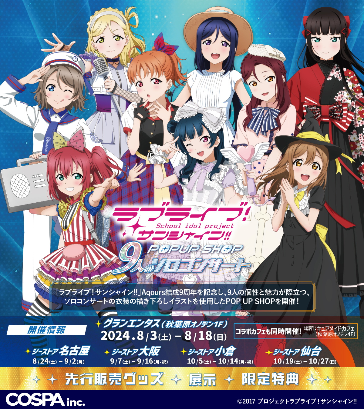 ソロコンサートの衣装をピックアップ!『ラブライブ!サンシャイン!!』POP UP SHOP~9人のソロコンサート~開催決定!